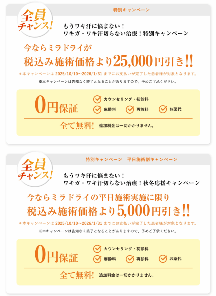 軽度~中度であれば、ミラドライでの治療が体への負担も少なくおすすめです。