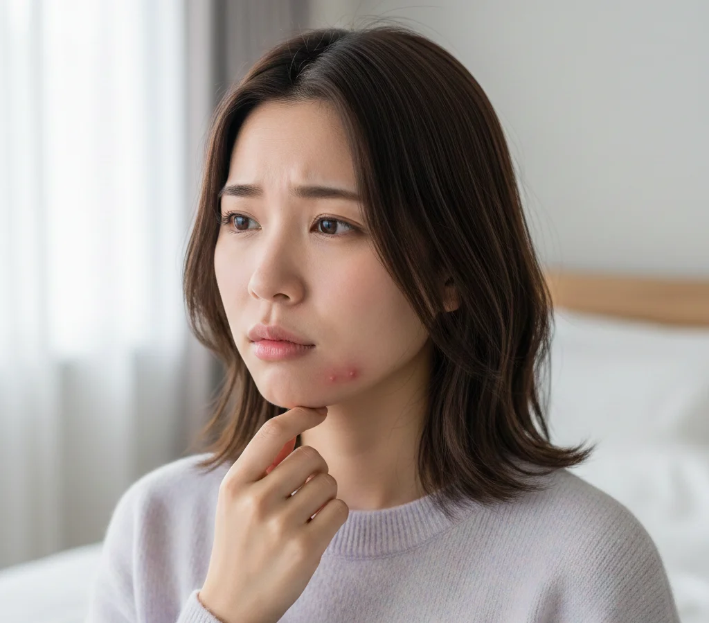 ニキビができる主な原因は、皮脂の過剰分泌、毛穴の詰まり、アクネ菌の増殖、ホルモンバランスの乱れ、生活習慣の乱れ(睡眠不足・ストレス・食生活)などが挙げられます。これらの要因が重なることで、毛穴の中に皮脂が蓄積し、細菌が繁殖しやすい環境が生まれます。