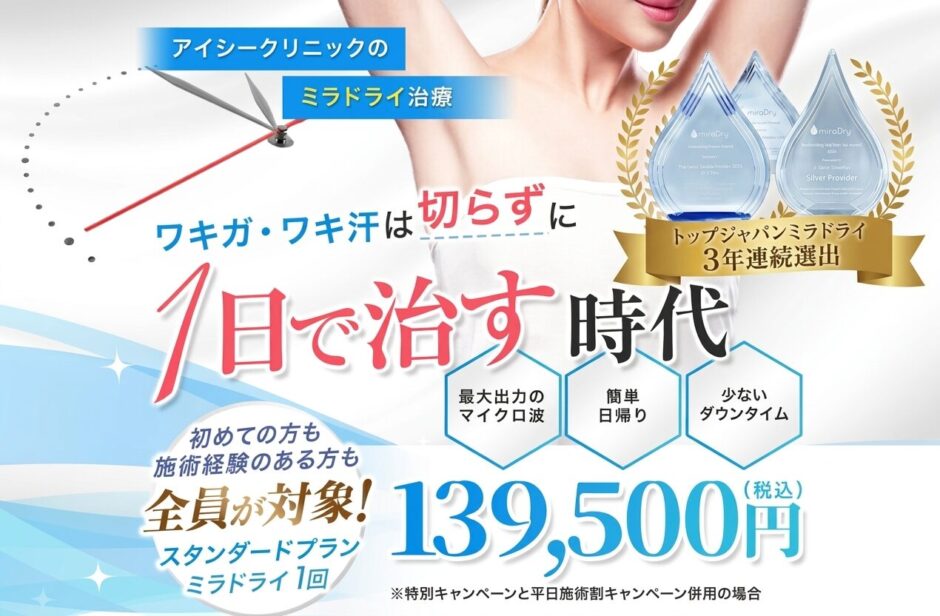 🏅 アイシークリニックはミラドライの公式認定医療機関です